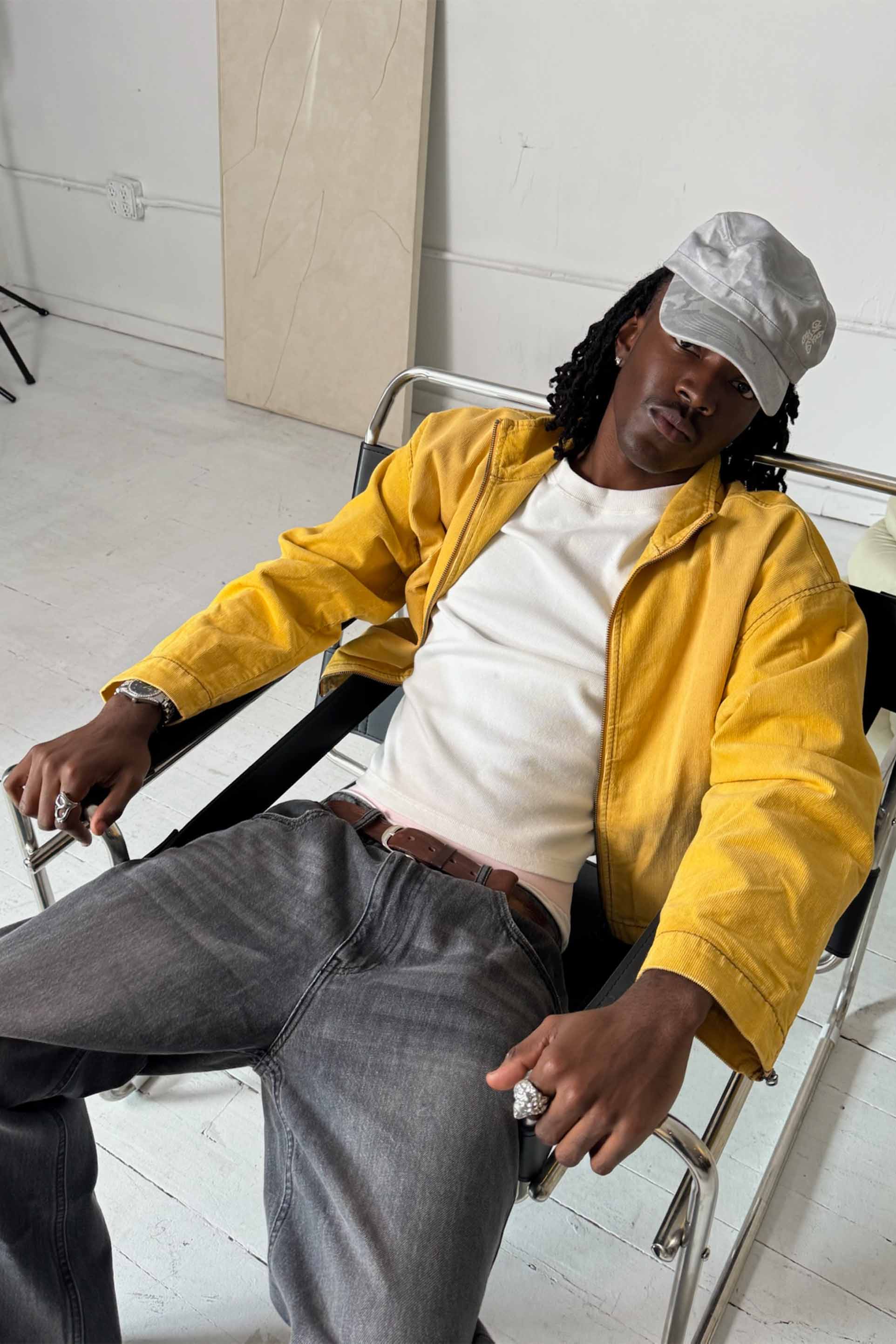 Chaqueta amarilla acampanada de pana