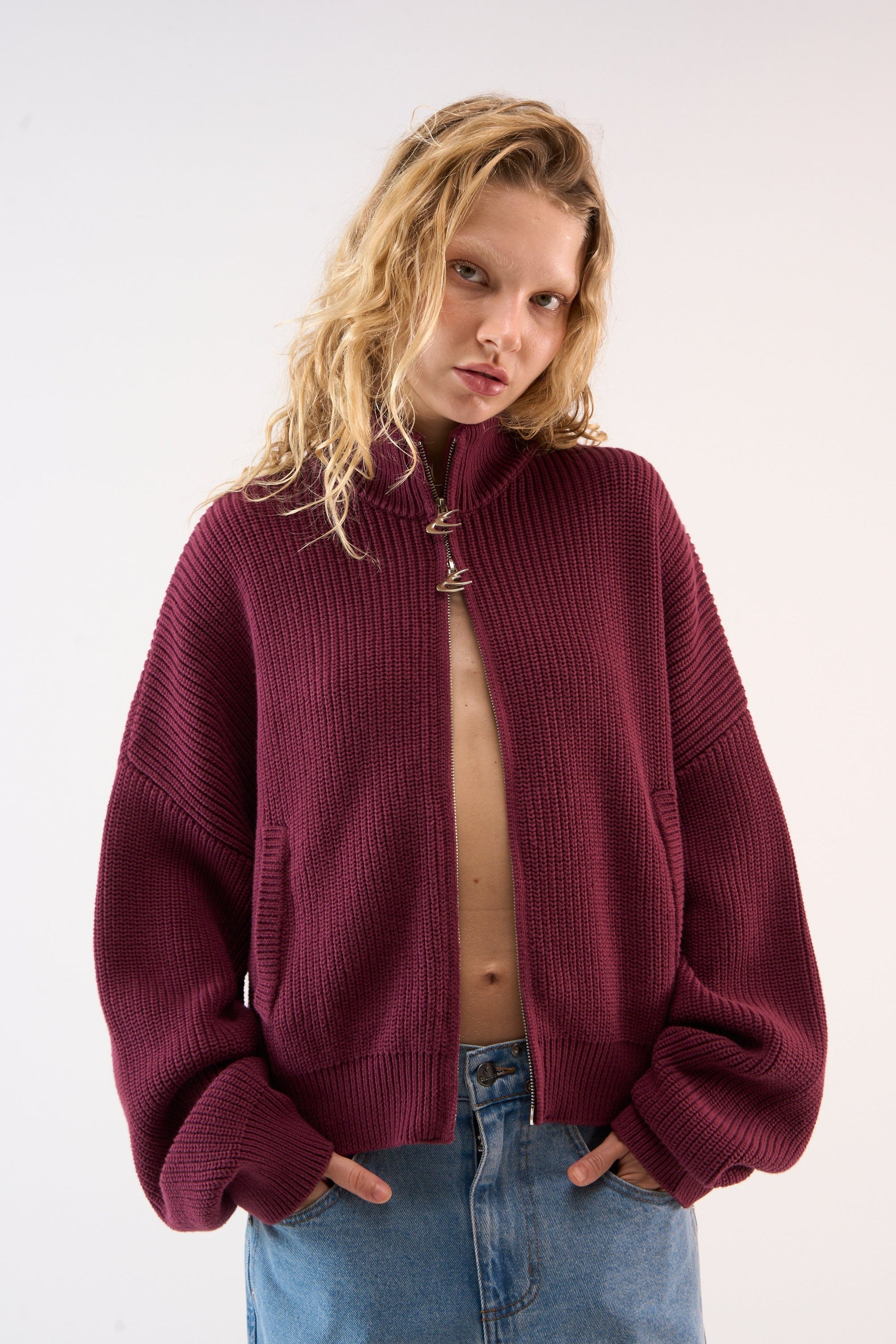 Cremallera de punto burdeos Delore