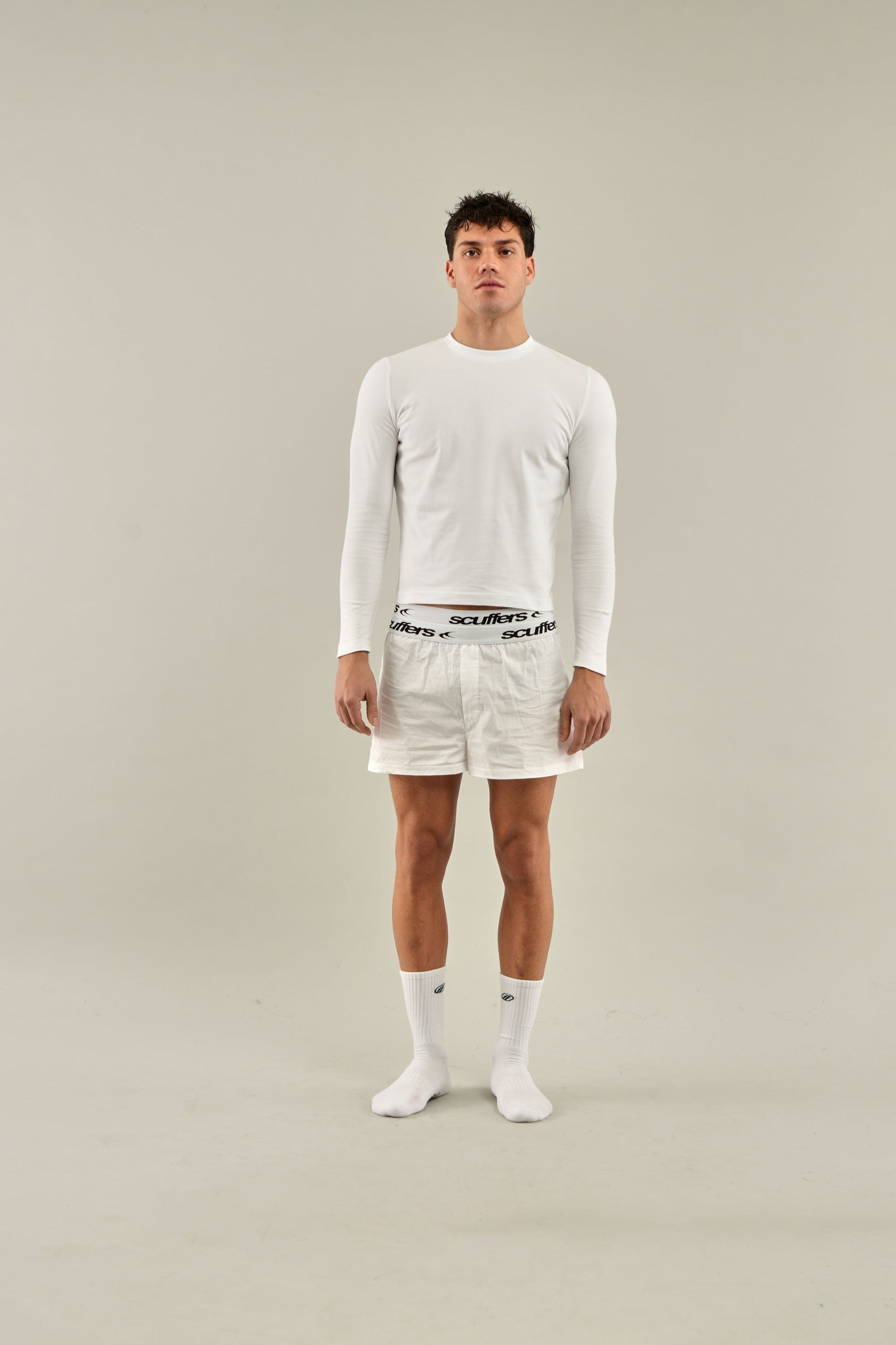 Los calzoncillos bóxer blancos cuentan con una cómoda cinturilla elástica con el logotipo repetido de Scuffers en blanco para aportar contraste y realzar la marca. Confeccionados con tejido ligero y transpirable, están diseñados para la comodidad diaria. Su corte holgado ofrece libertad de movimiento, lo que los hace ideales tanto para uso casual como deportivo.