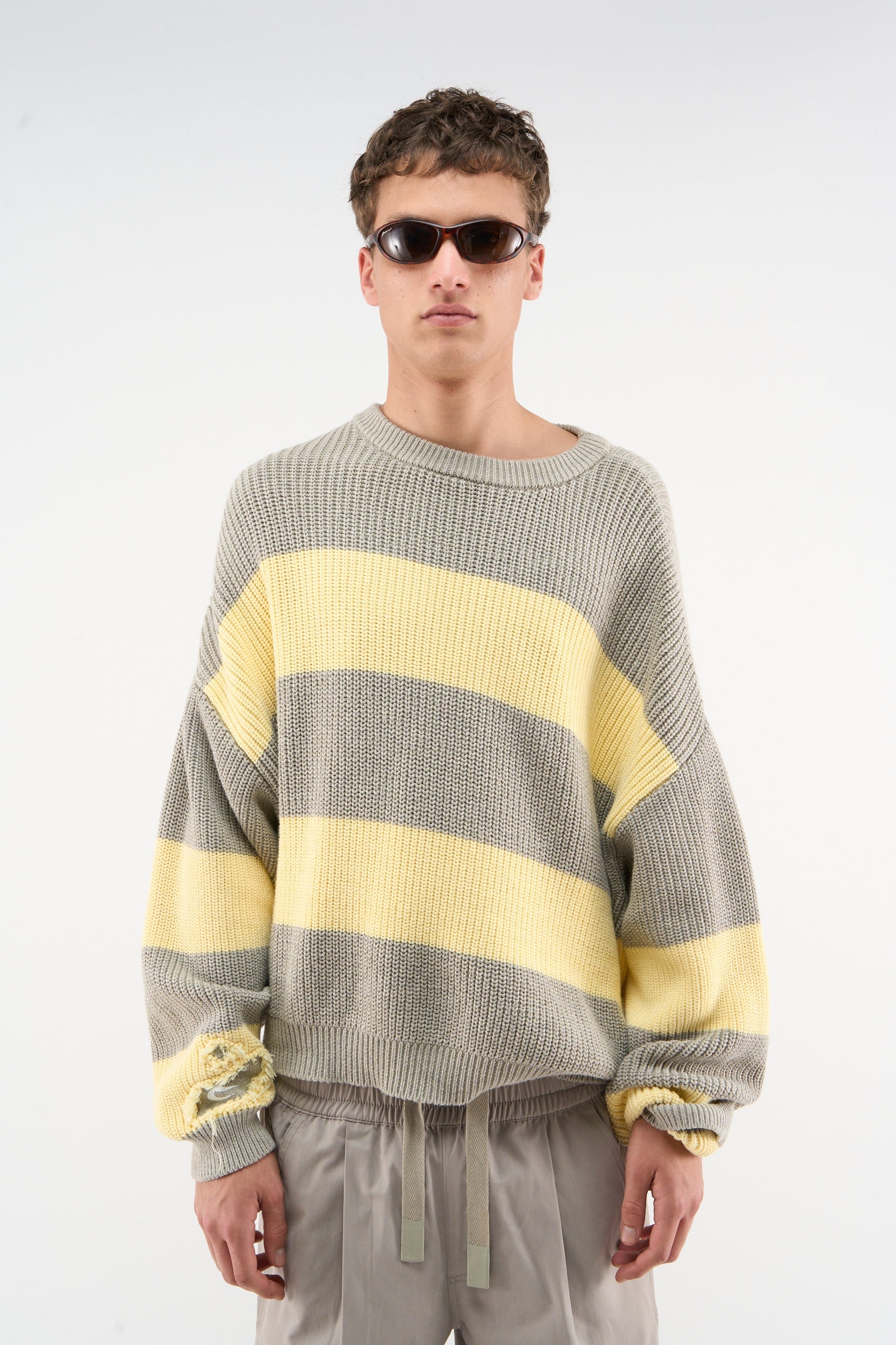 Tejido de punto amarillo y gris con agujeros