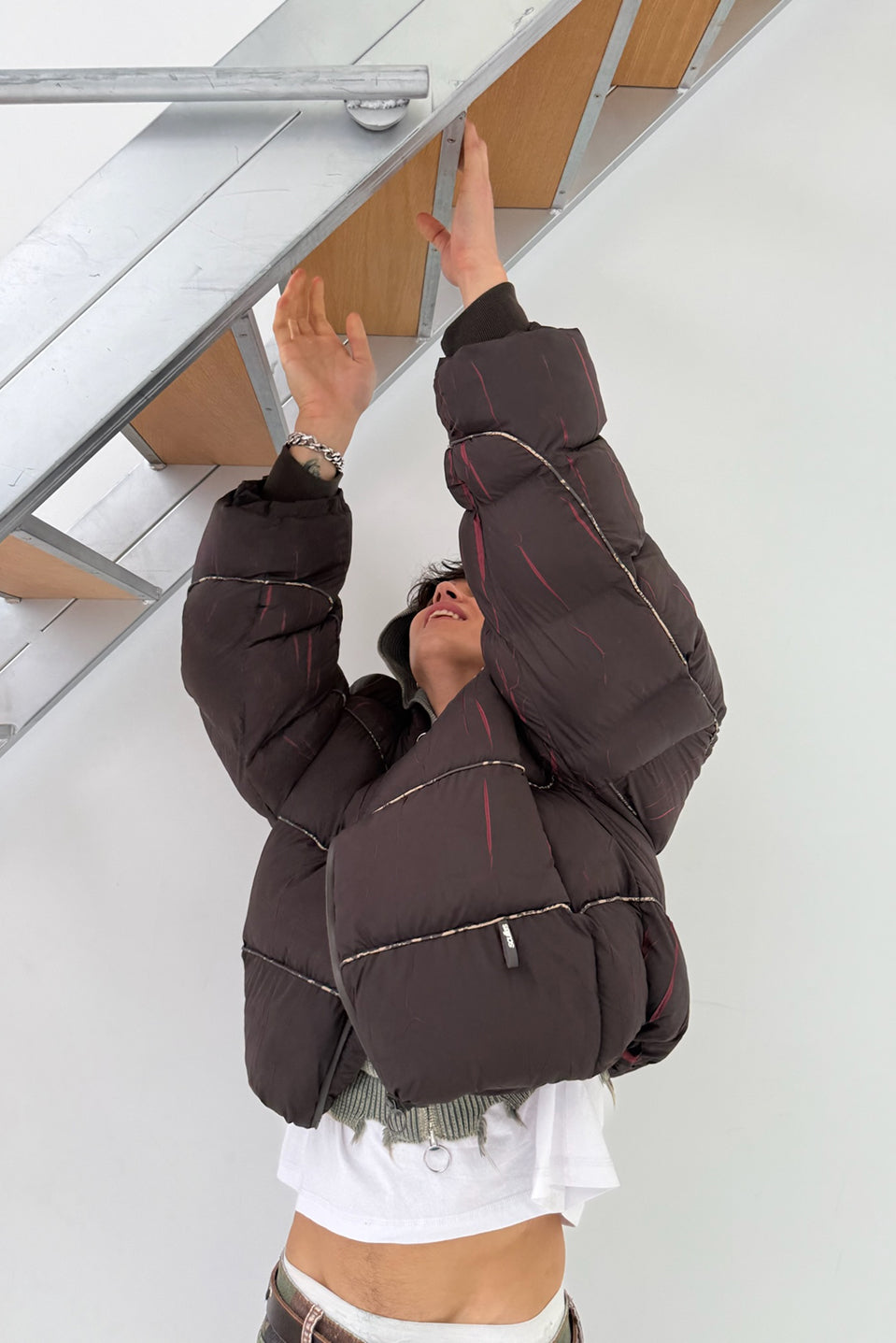 Chaqueta acolchada marrón mármol
