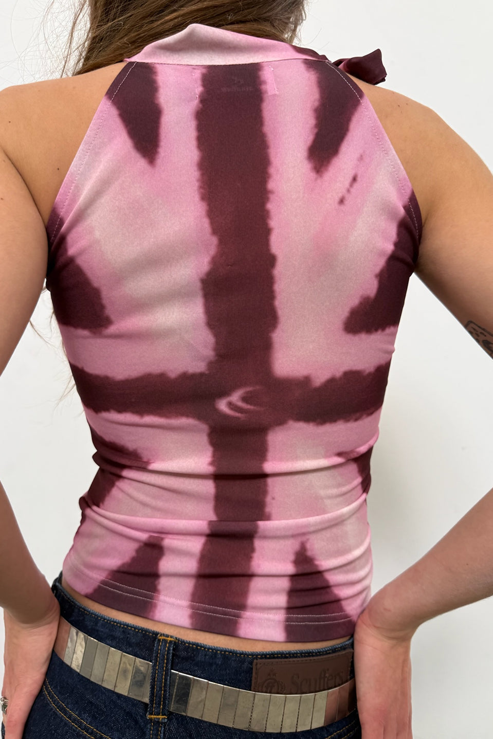 Camiseta de manga larga marrón a rayas sin rematar