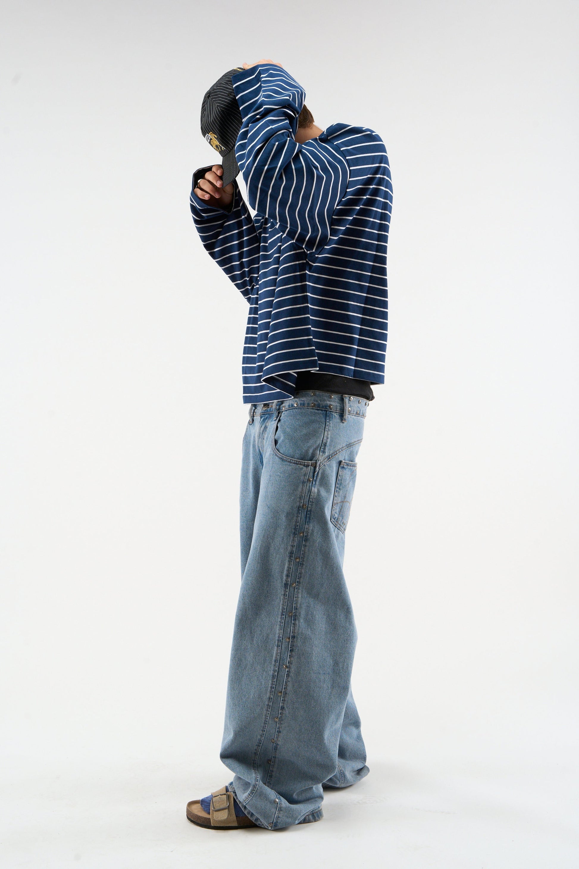 Camiseta de manga larga marrón a rayas sin rematar